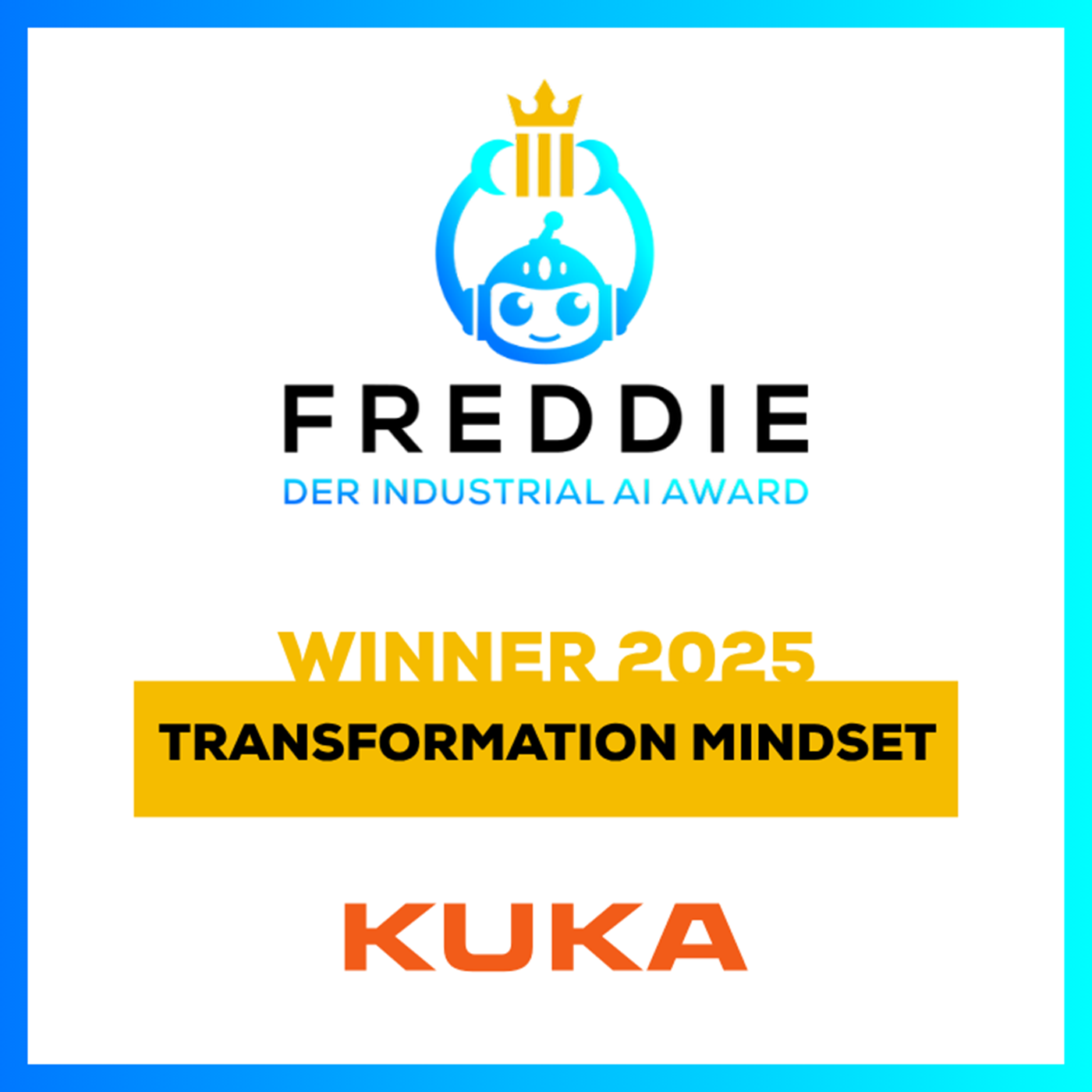 At the FREDDIE – Industrial AI Award – ceremony in Munich, KUKA was recognized for its Xpert AI Assistant in the “Transformation Mindset” category. The award celebrates standout AI solutions in manufacturing that deliver real impact, drive innovation, and show strong potential for the future.