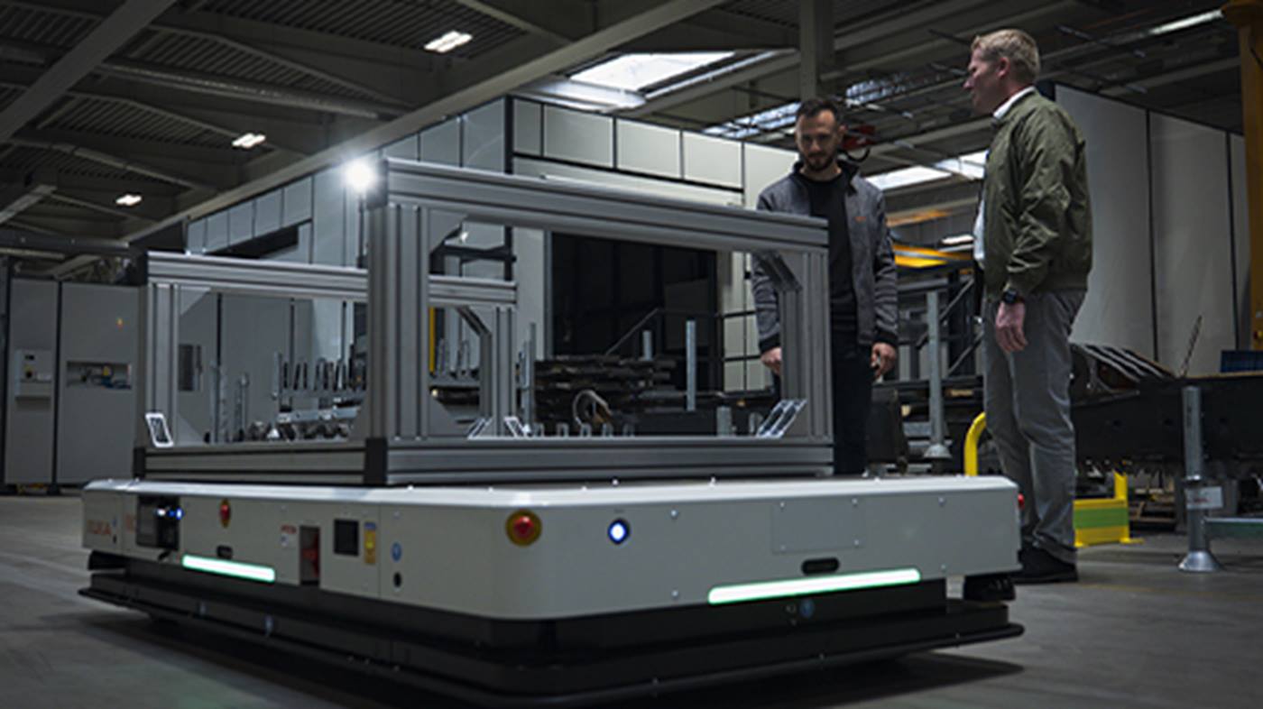 如今,焊接机器人的物料供给 已实现自主化 ,叉车也基本从生产环节中退出。取而代之的是,运输平台会自主运送压缩空气罐、门部件等物料至生产单元。随后,一台搬运机器人将这些物料装入焊接设备。而完成焊接的组件也会同样以自动化方式被运出。“自主移动机器人帮助我们将这里许多分散的流程串联起来。通过这种方式,我们不仅减少了对传统输送技术的依赖,同时显著提升了生产和内部物流流程的效率 ”,René Mecklenburg 表示。在 KRONE,人与机器携手协作:“员工负责零部件的准备和品质管控,而机器人 则承担体力繁重的焊接工作。这样一来,我们不仅将员工从繁重、单调的任务中解放出来 ,还能营造更有序的生产环境,并提升作业安全性”, Mecklenburg 进一步说道。KRONE 商用车集团生产总监 Volker Perk 认为,机器人技术是保障生产基地未来发展的核心要素:“我们希望未来继续在德国生产 像 Profi Liner 这样的卡车挂车。为了这一目标 ,我们必须实现流程自动化 ,因为很多关键岗位已面临技术人才短缺。机器人技术让我们能够将员工调配至效率更高或创造更多价值的工作岗位。”