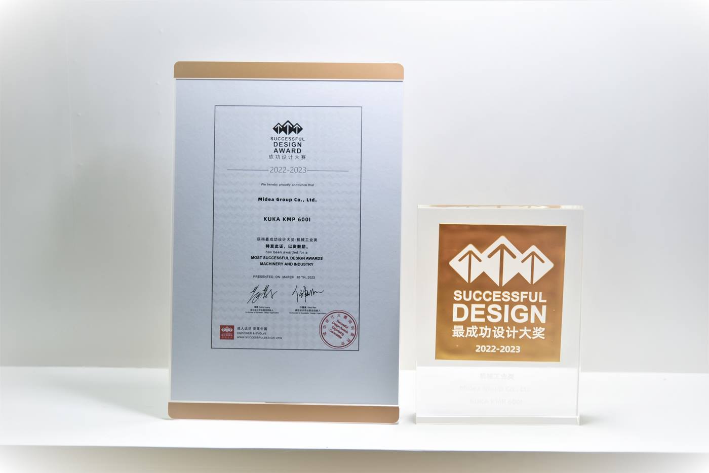 成功设计大赛是中国本土发起且有着16年历史并放眼全球的顶尖国际设计奖项。经过行业权威专家一致评审,库卡移动机器人KMP 600i在本次大赛中成功斩获“成功设计至臻奖”,标志着其外观工业设计获得了全球设计界的一致认可。